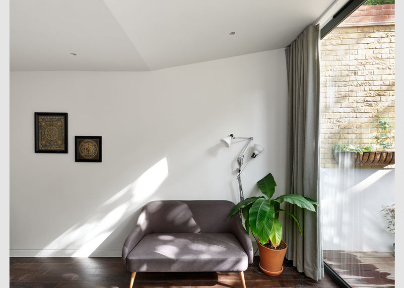 The three facades of the house are of two brick types, a yellow London-stock typical of the area and a red imperial brick, with dog-tooth coursing in reference to the cornice details of the adjacent houses. Roof and fenestration lines are carried through from old to new, but translated into new proportions and new relationships. The material and geometric connection of new and old anchors the building to its context, and hopefully means that the building doesn’t look too much like the new kid on the block.